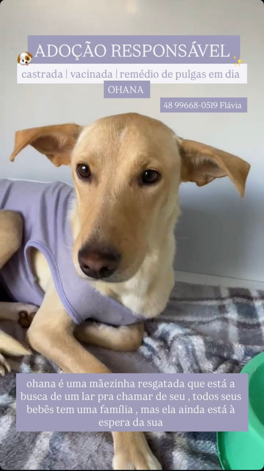 Ohana foi resgatada em pouso alto ,na chuva gravida , com seus tres filhotes , acolhendo entre seus braços , com muito frio , fome e medo, resgatamos , esta castrada ,vacinada e desparasitada, pronta pra ter um lar cheio de amor e pra ser um lar quentinho, como merece , se da bem com outros animais.